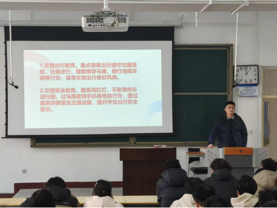 12月18日,为全面加强学生安全意识,筑牢校园安全防线,国际教育学院各带班辅导员组织召开“文明出行,交通安全”主题班会,就校园安全规范开展教育和指导。