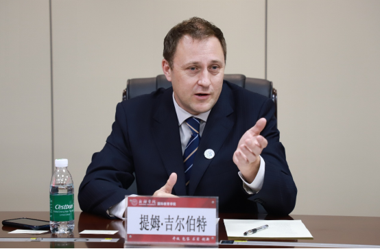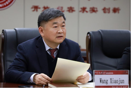 王孝俊首先发表致辞。他代表学校对提姆・吉尔伯特一行的到访表示热烈欢迎,并简要介绍了新乡学院的办学历史、学科布局、人才培养以及国际交流成果。王孝俊指出,中澳教育合作发展迅速,为推动两国社会、文化与经济发展做出了重要贡献。两校顺势而为,经过深入沟通与友好协商,确定在人工智能、数据科学与大数据技术和酿酒工程三个优势专业开展中外合作办学,目前申报工作正在有序推进。他强调,高校作为对外文化交流与人才培养的重要载体,肩负着推动国际合作、促进文明互鉴的重要使命。新乡学院与墨尔本理工学院强强联合,必将发挥“1+1>2”的协同效应。两校通过课程共建、师资互派、资源共享等多元化合作模式,必定会推动双方进一步提高人才培养质量、提升科学研究水平。展望未来,他希望双方以此次座谈会为契机,持续拓展合作领域,在师生互访、科研合作、联合实验室共建等方面取得实质性进展,共同培养具有国际视野、适应全球发展需求的高素质人才。