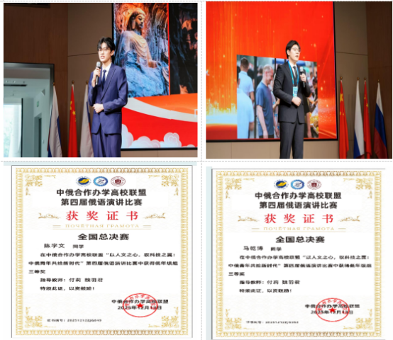 12月11-13日,以“人文之心,驭科技之翼:中俄青年共绘新时代” 第五届中俄合作办学高校俄语演讲比赛全国总决赛在广东省湛江市圆满落幕。我院选派的2名学生凭借扎实的俄语功底、出色的演讲表现,双双斩获低年级组三等奖,创下我院在该赛事中的历史最佳成绩,为学校赢得了荣誉。