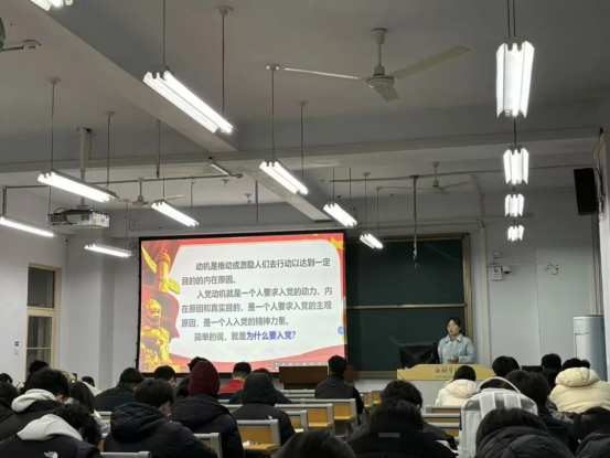 聂鸣琨老师以《坚定理想信念,践行初心使命,做信仰坚定的青年大学生党员》为主题,强调了青年者,国家之魂;信仰者,前行之灯。在新时代的征程上,青年大学生党员既是追梦者也是实干家,唯有筑牢信仰之基、补足精神之钙、把稳思想之舵,方能在青春赛道上跑出属于这一代人的最好成绩。常新语老师以《习近平新时代中国特色社会主义思想及党的二十大和二十届二中、三中全会精神》和《党的辉煌历程与基本经验(含党的统一战线知识)》为主题,她深入剖析二十大及历次全会精神核心内涵,呼吁学员坚持知行合一,将全会精神转化为指导学习、推动实践的强大动力。刘亚娜老师聚焦《加入中国共产党的条件、标准及入党程序》,围绕发展党员工作的“五个定义”“四个考察期”“五个阶段”等关键要点,细致解读入党全流程,激励学员们在持续学习与实践历练中向党组织靠拢。